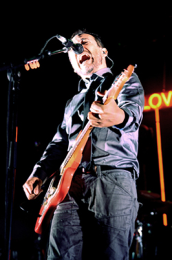 Poca luz, minimalista pero elegante, La Noche Eterna abrió un concierto de dos horas y media en el que la revalida de los temas nuevos fue pronto superada con Belice y El Hambre Invisible. Balmes avisaba de que hoy nos esperaba una noche eterna en la que iban a ir a por todas alternando temas de sus trabajos en castellano. Y así fue, pronto comenzaron a sonar otros como Niña Imantada, Noches Reversibles o las poco habituales Carta A Todas Tus Catástrofes y Me Llaman Octubre, esta ultima con la colaboración de Charlie Bautista al acordeón.